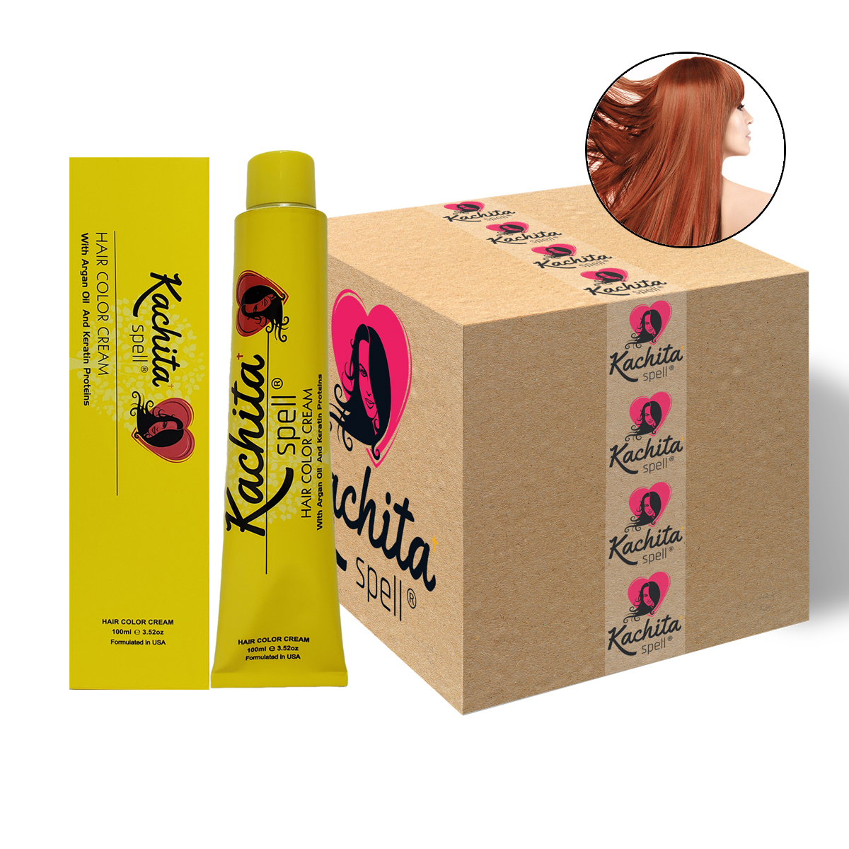 Light Copper Brown 5.4 Hair Color Cream Kachita Spell is an innovative formula of double pigmentation. Price includes 72 Boxes (72 Tubes) per Box order.