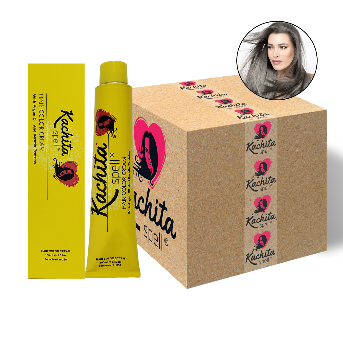 Smoke Silver Shade Hair Color Cream Kachita Spell is an innovative formula of double pigmentation. Price includes 72 Boxes (72 Tubes) per Box order.